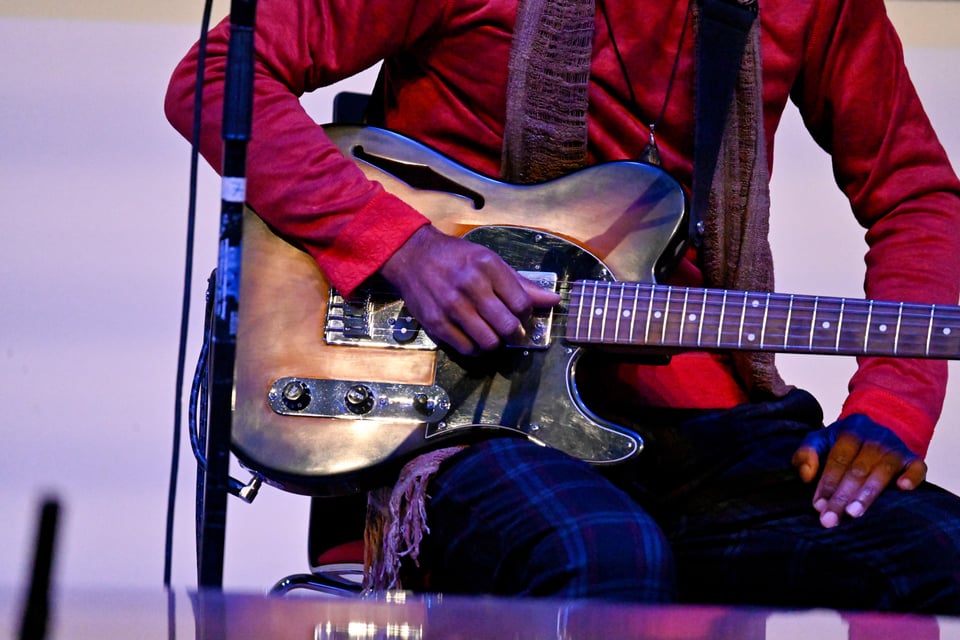 To date, he has released six albums: Mascamad (2006), Trapdanza (2015): ChinoRun (2018), Santié mon Rasine (2019), Karousèl Spirit (2022 and winner of a SACEM award in 2023), and Zarlor nout Mizik (2022). Jozéfinn' was also featured on the Jazz Rényon 2024 compilation, which brings together the best local jazz productions. His seventh album, Fandamane, was released in April 2025. This new opus, released on the Spanish label Protomaterial Records, is even deeper, more powerful, and more unifying than ever. He is a composer, artistic director, and guitarist for other artists' projects. His creations extend to theater, poetry, and dance. In November 2023, he received a SACEM award in recognition of his exceptional career. The album “The Best of Jozéfinn'” was released in 2024 by JazzRenyon Distribution to mark this milestone.