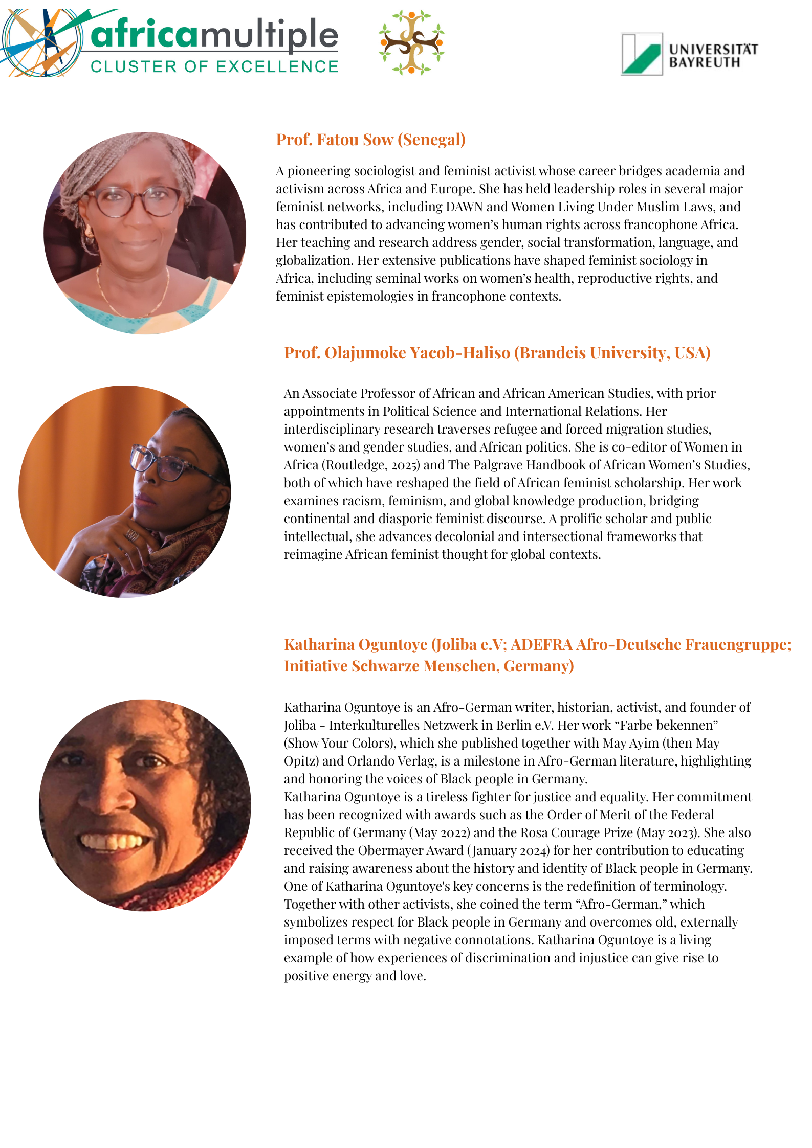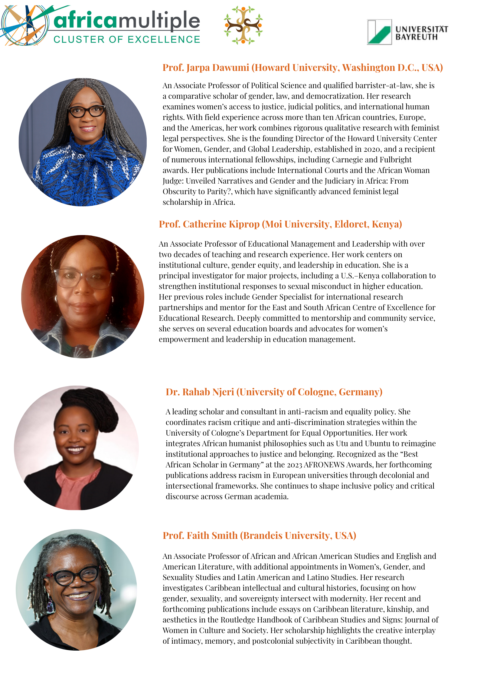 At a moment of rising anti-democratic, anti-feminist, and neo-masculinist movements worldwide, the dialogue asks: how can African feminist thought reconfigure the ways we understand gender, resistance, and solidarity? Where do intersectionality and decoloniality meet in African feminist praxis, and how do these frameworks speak back to global knowledge production?