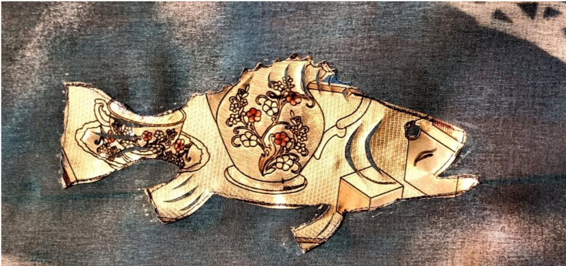 In the disrupted order depicted in this work, place and space are inverted. Fish, still glittering and beautiful are now inedible and swim alongside spacecraft. Our dreams are haunted by reverberations from the Abyss, perverse echoes of sky and sea, water and air, sustenance, and poison.