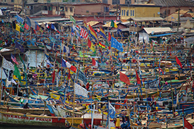 The colourful picture that was taken in 2016 shows a fleet of fishing boats in Elmina, Ghana.